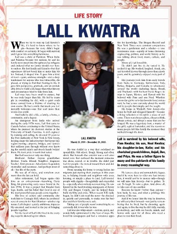 the Port Authority of New York & New Jersey, LALL KWATRA Lall is survived by his beloved wife,