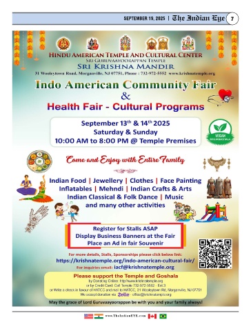SEPTEMBER 19, 2025 | The Indian Eye 7 www.TheIndianEYE.com